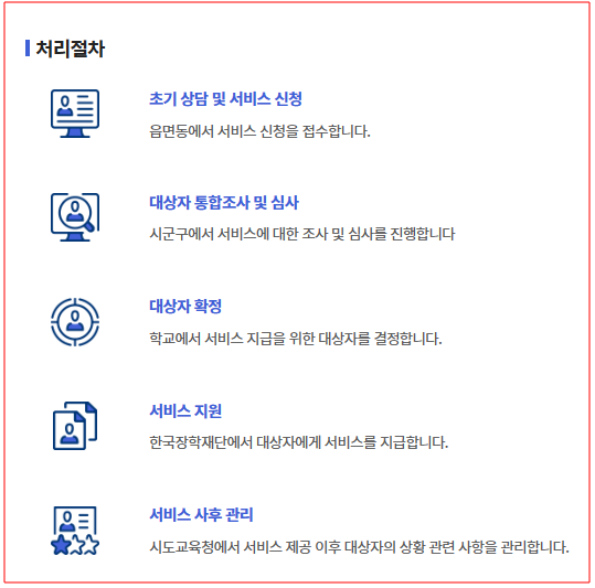 초. 중. 고등학생 교육활동지원비와 고등학생 교과서비, 입학금 및 수업료를 지원합니다.