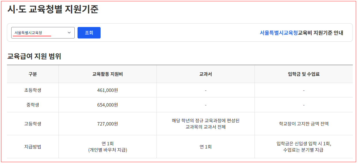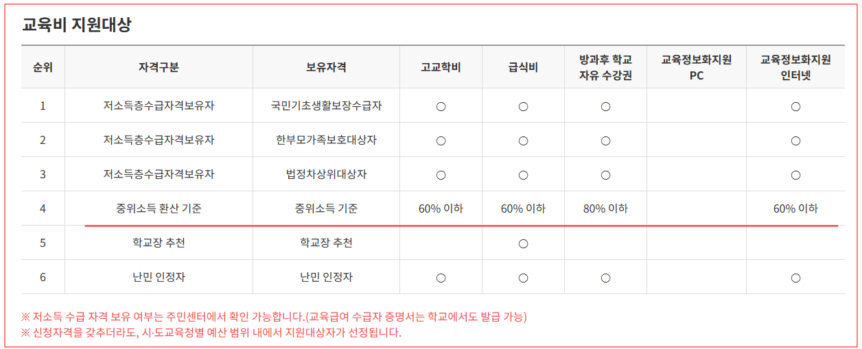각 시. 도 교육청별 지원기준과 지원대상 중위소득지원대상 알아보러 가기