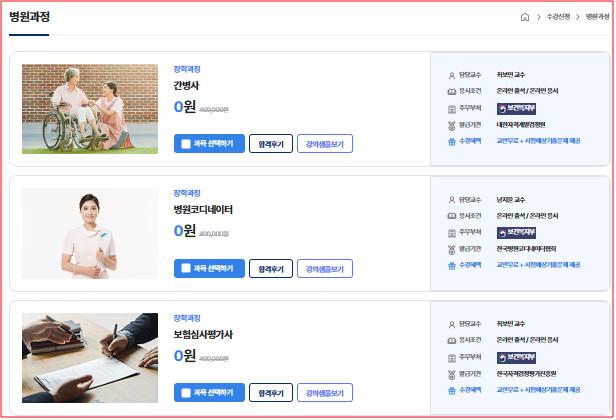 국민교육복지센터에서 병원과정, 실버과정, 심리과정, 운동과정, 반려과정등 여러 가지 교육을 전문적으로 받을 수 있다.