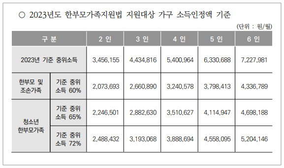 한부모가족 소득인정액