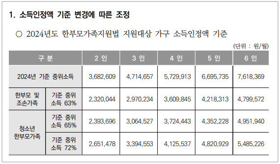 기준 중위소득 63% 이하 한부모 및 조손가족(비급여)