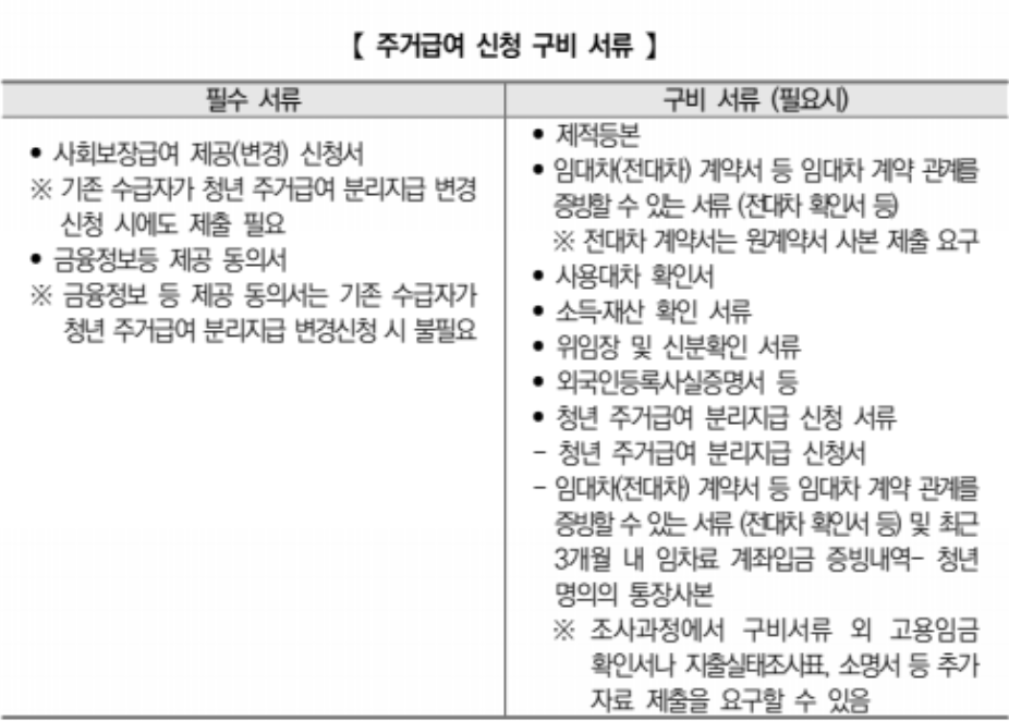 - 주거급여가 불필요하거나, 타 법령등에 의하여 주거를 제공받고 있는 수급자에 대해서는 주거급여를 지급하지 않습니다